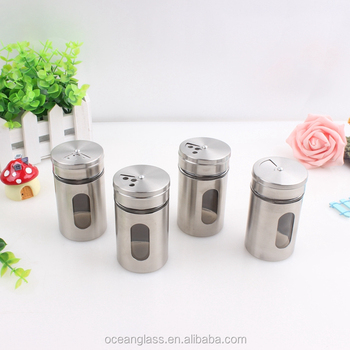 شاكر التوابل الزجاج لفلفل الملح مع طلاء الفضة